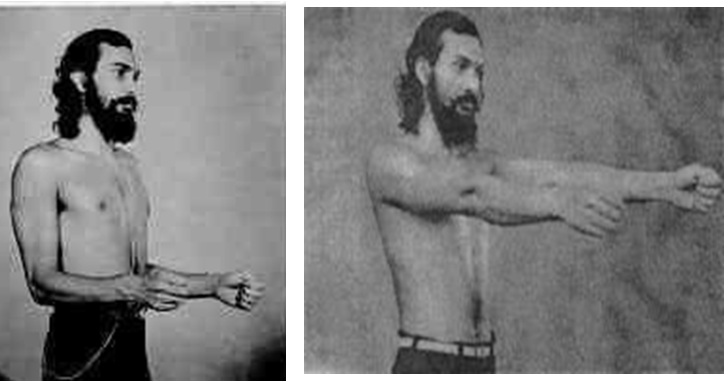 Exercise: Swing your arms vigorously forward and backward at shoulder height. Ensure the elbows do not extend beyond their starting position. When pushed forward, keep your arms parallel to the ground. Maintain steady, natural breathing throughout the exercise. Start with 25 repetitions initially. This movement helps strengthen underdeveloped arms and weak biceps, promoting muscle growth. For heavier arms, it can contribute to a more slender appearance. Additionally, it enhances the resilience of elbow joints and can help alleviate arm and shoulder deformities.