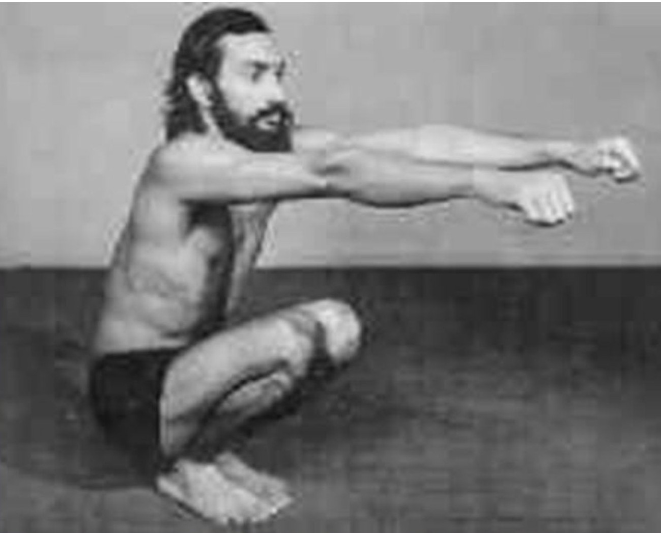 Exercise: As you inhale through your nose, lower yourself into a squat while extending your arms.