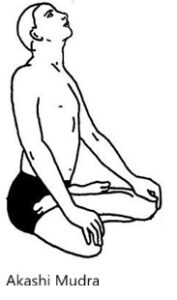 Unlike Ākāśa Mudrā, which is performed with thumb and middle finger, some traditions describe Akashi Mudrā as a gaze (drishti) and awareness mudrā that expands inner vision, especially by focusing awareness in the inner space of the head and heart. It is both a hand gesture and a mental practice for cultivating spaciousness and universal connection.
