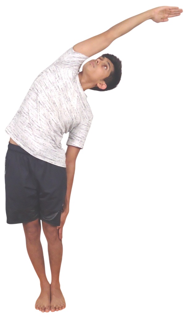 This asana is a standing lateral bend that opens the intercostal muscles, obliques, and shoulders while simultaneously engaging core, legs, and stabilizing muscles. Regular practice improves posture, balance, respiratory capacity, and mental focus, making it a vital pose in Hatha Yoga and vinyasa sequences.