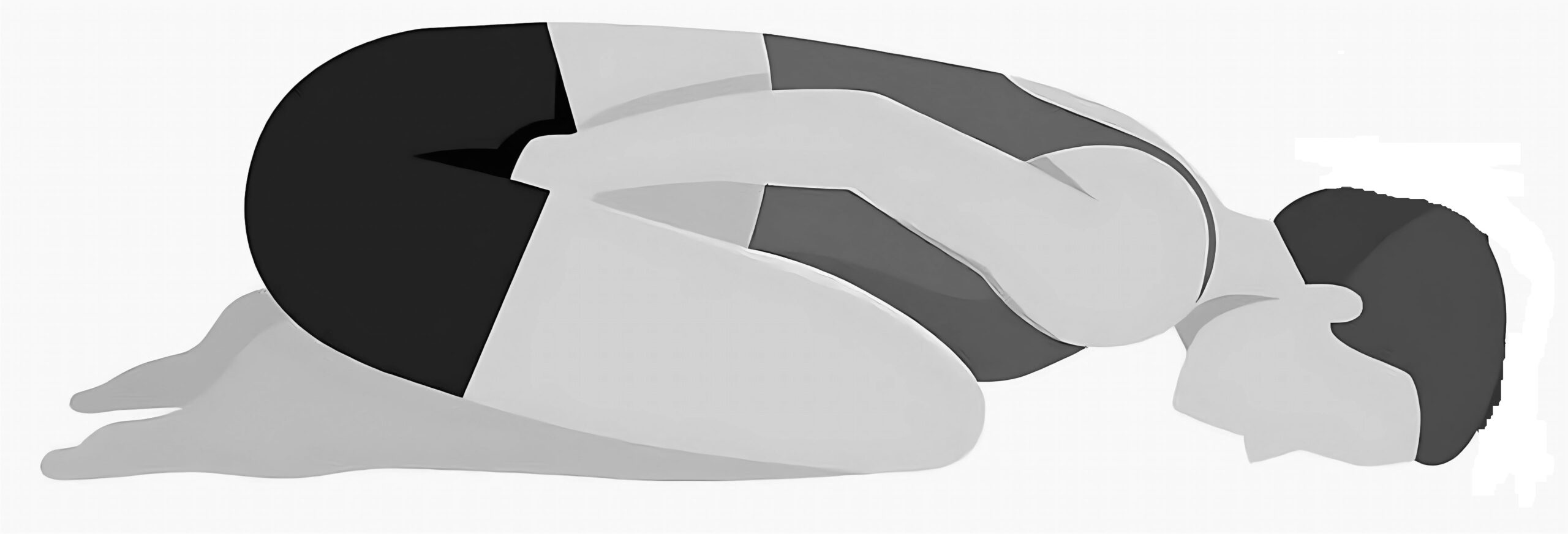 – Kneeling posture with fists pressing the abdomen - Mandukasana (Modern Yogic Frog Pose / Hip Opener Frog)