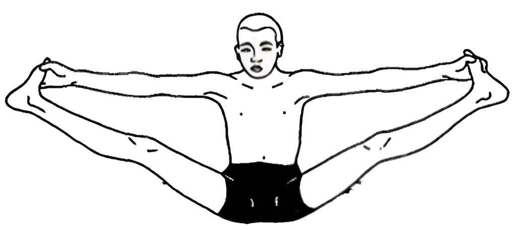 - Insert index and middle fingers around the big toes (Padangustha grip).