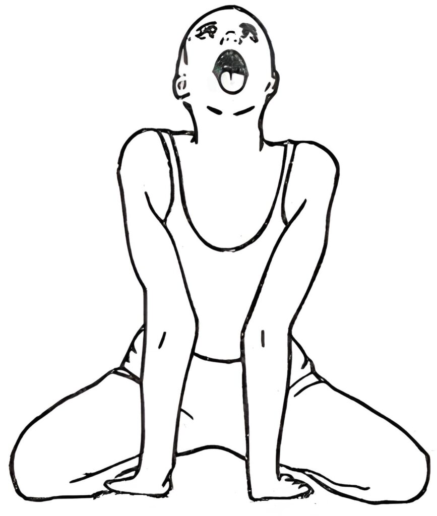 Thus, Simhasana literally translates as “Lion Pose”, a yoga posture that emulates the majestic qualities of a lion, including strength, courage, and expression. This pose is distinctive for its forceful exhalation with tongue extension, symbolizing the lion’s roar, which is thought to release tension, stimulate facial muscles, and activate energy pathways.
