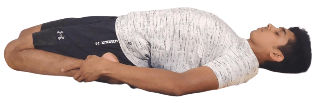 - Reclines gradually onto the back, resting on the ground or on props such as blankets or bolsters