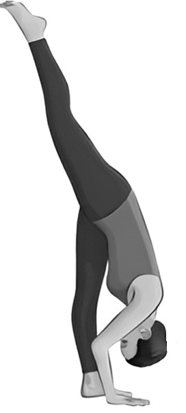 - Advanced: Leg extended overhead with torso slightly tilted forward (standing variation).