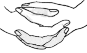 Joints: Flexion at interlocked fingers; relaxed wrist and shoulder positioning.