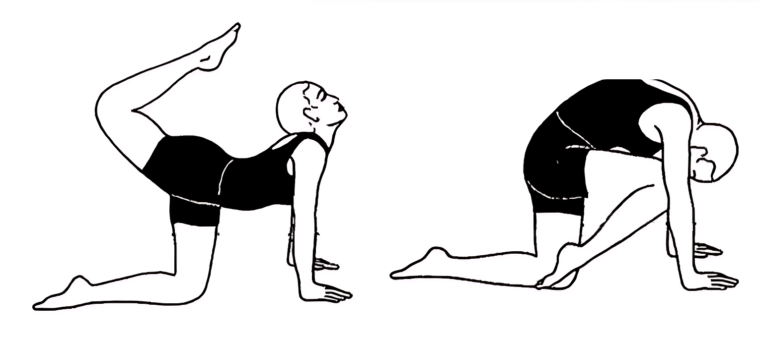 2. Simultaneously, allow the spine to extend gently (cow-like movement).