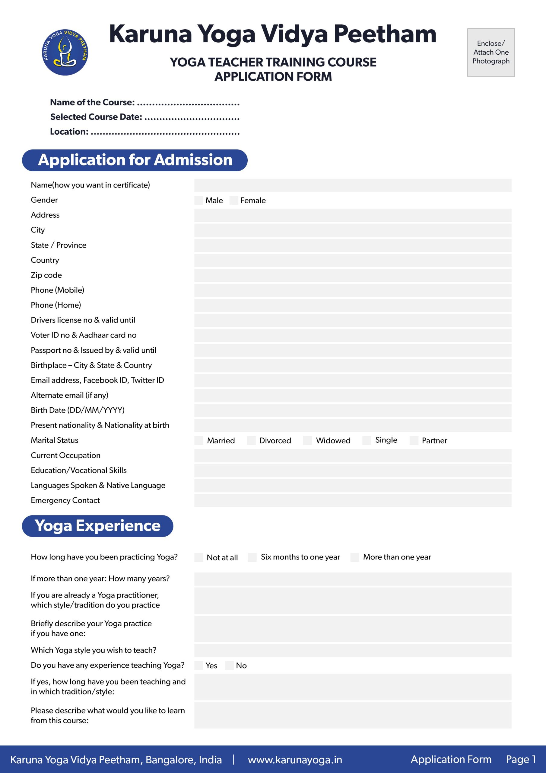 Karuna Yoga Vidya Peetham Bangalore
