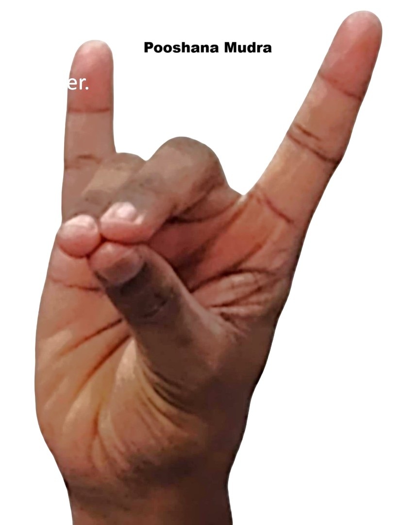 Pushan Mudra (Giver of Good Health) Introduction Mudras are yogic hand gestures that influence the flow of prana (vital energy) to harmonize body, mind, and