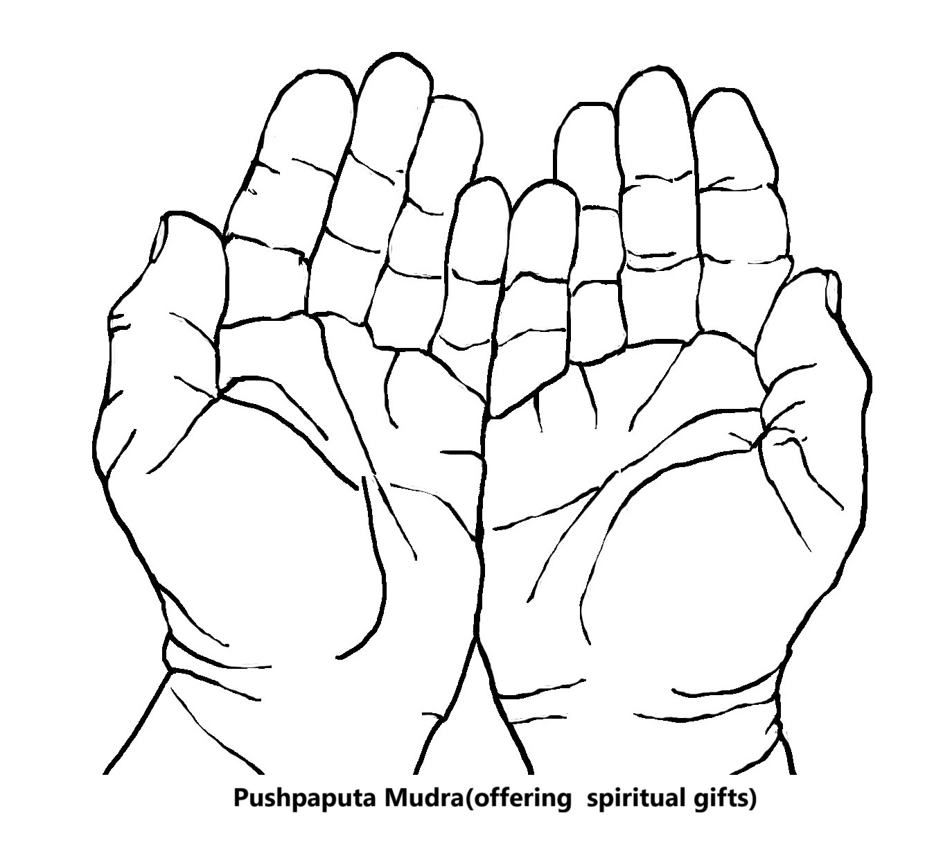 Pushpaputa Mudra(offering spiritual gifts) Introduction Mudras are yogic hand gestures that direct the flow of prana (life energy) to balance the body, mind, and subtle